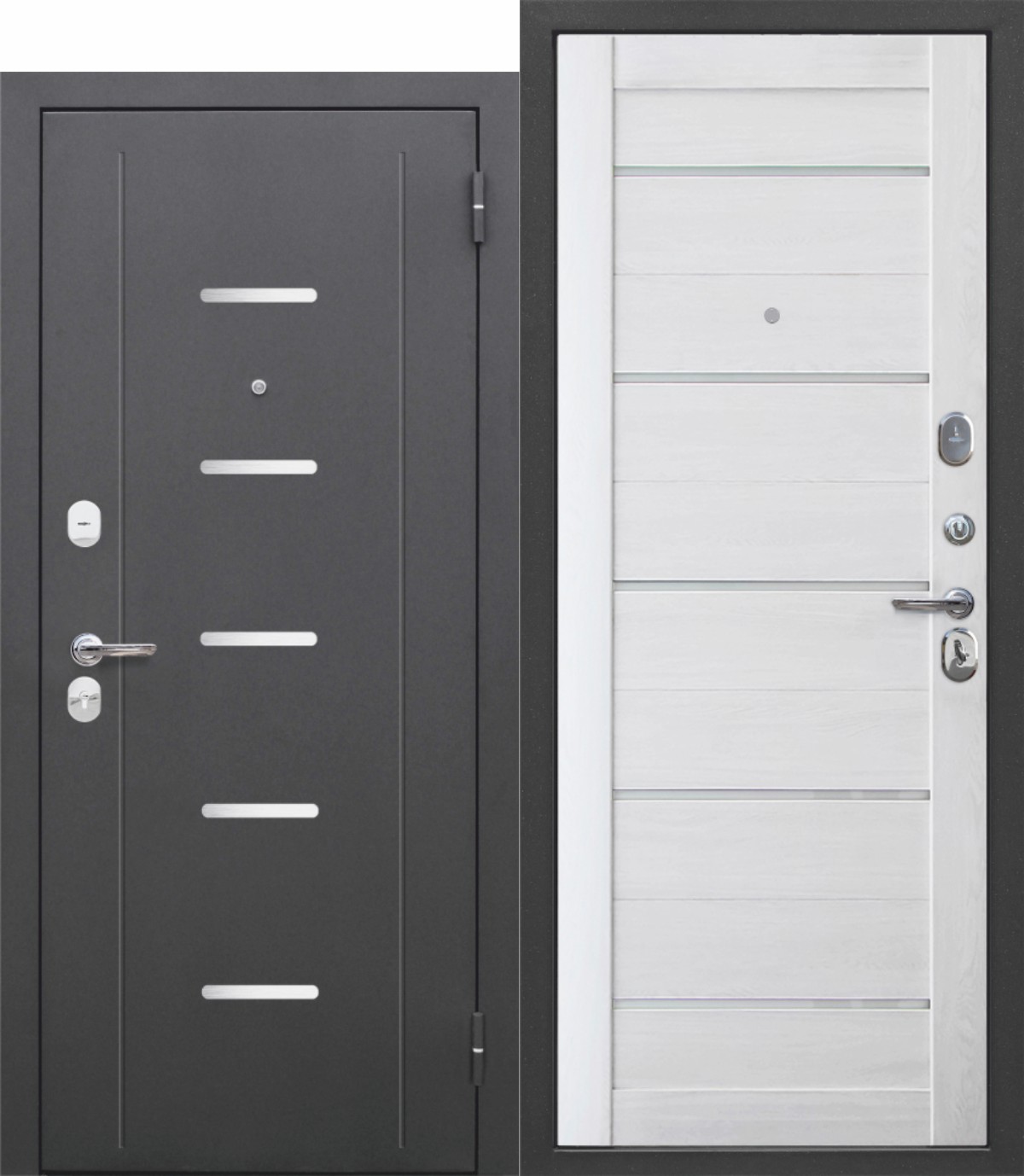Много Дверь мет. STRONG 1005 Белый Зеркало 860*2050*90 L